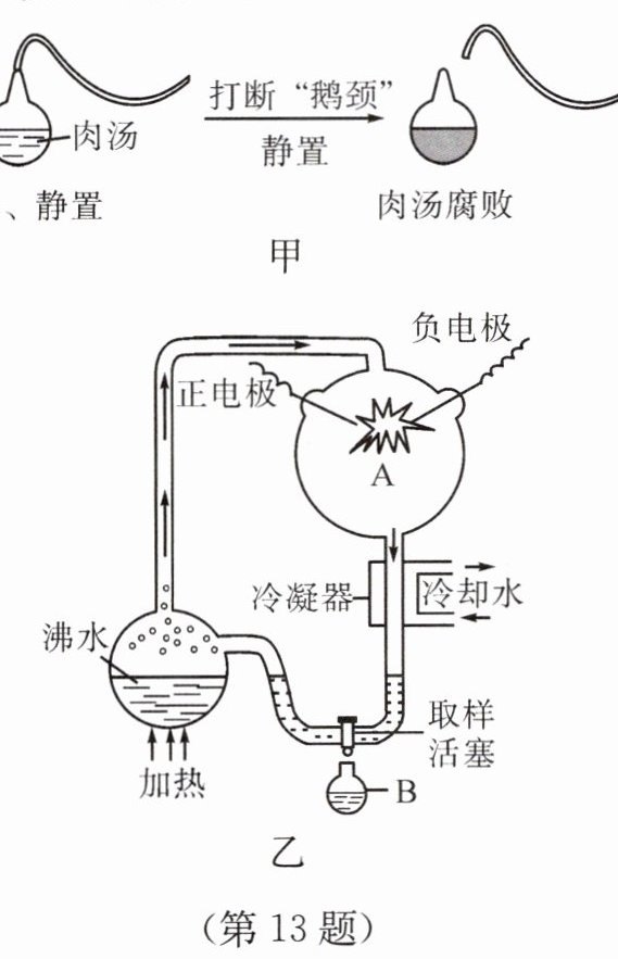 13.(1)被称为“微生物学之父”的法国微生物学家巴斯德设计了著名的“鹅颈瓶实验”,如图甲所示。