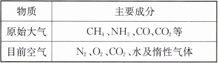 12. 数十亿年来,地球上的物质在不断地发生着变化。下表是原始大气和目前空气的主要成分,请回答下列问题。