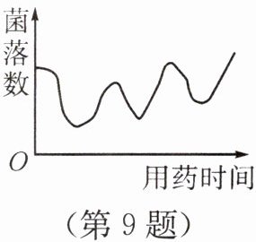 9. 【通辽】如图所示为某研究所利用某种新型抗生素对一种致病菌多次用药实验的效果图,下列解释中,不符合达尔文自然选择学说的是( )