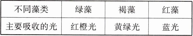 14. 海洋中的三类藻类植物主要吸收的可见光如下表所示,请据表回答下列问题: