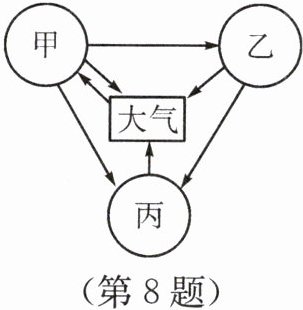 8. 【太原】如图所示为自然界中的某物质循环示意图,其中甲、乙、丙依次是 ( )