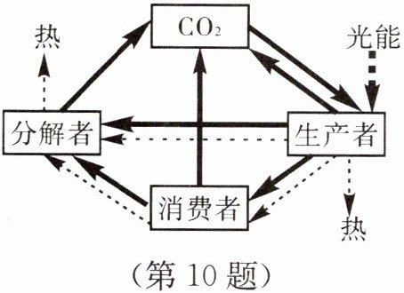 10. 如图所示为自然界中碳循环与能量流动的示意图。据图判断,下列说法中,错误的是 ( )