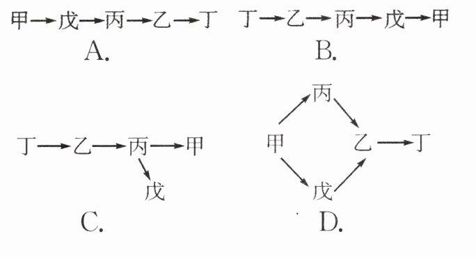 13. 【新疆】在某生态系统中,各种生物体内残留的某重金属含量如下表所示,则该生态系统中最可能的食物链构成是 ( )