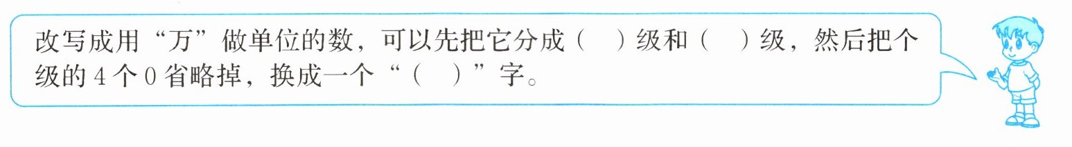 改写成用“万”做单位的数,可以先把它分成( )级和( )级,然后把个级的4个0省略掉,换成一个“( )”字。
