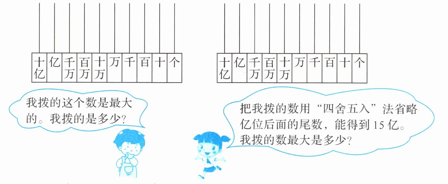 把我拨的数用"四舍五入"法省略亿位后面的尾数,能得到15亿。我拨的数最大是多少?