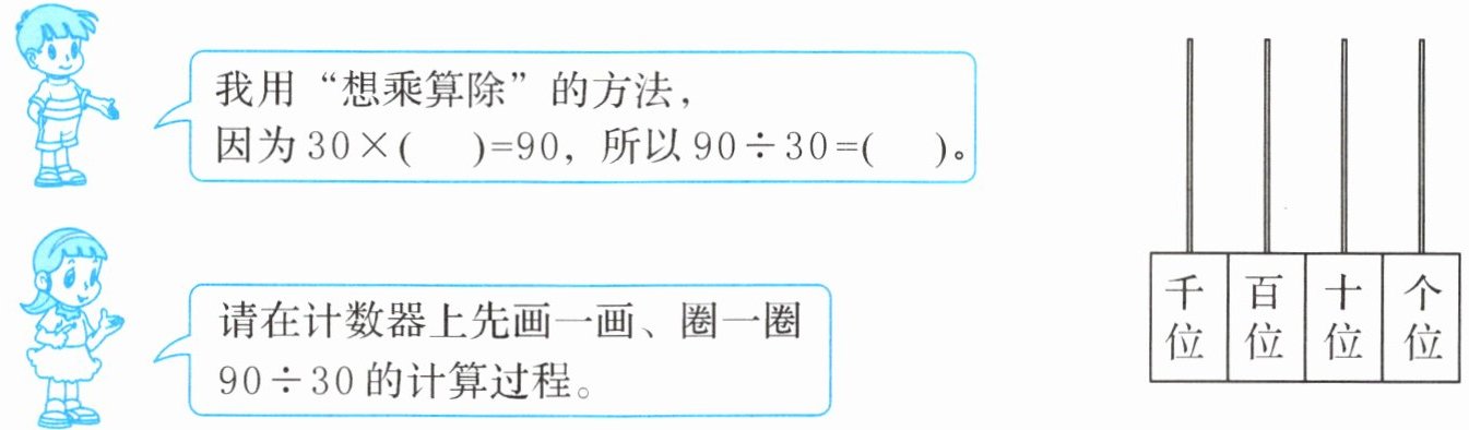 因为30×( )= 90,所以90÷30= ( )。