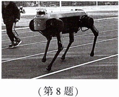 8. 如图是浙江大学机器人研究团队研发的名为“绝影”的四足机器狗,它能在各种路况下平稳地行走,甚至可以做出一些复杂的动作。以下关于“绝影”特征的描述中正确的是( )。