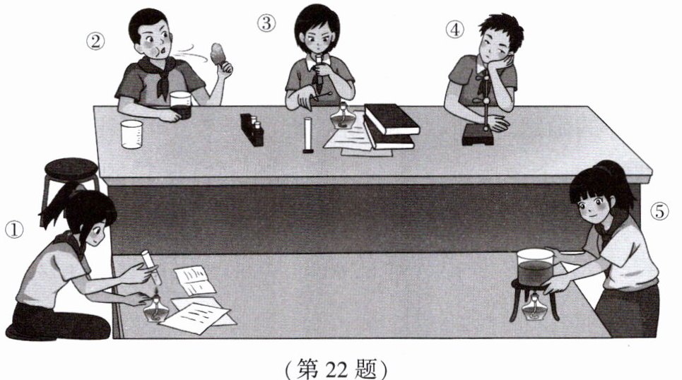 22. 从图中找出同学们的哪些行为不符合实验室安全守则? 请试写出三条。