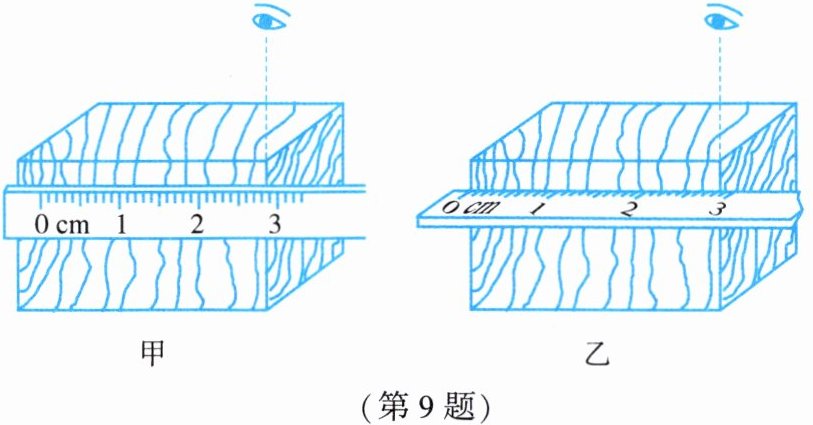 9. 如图所示,甲、乙两位同学用刻度尺测量物体的长度,其中______同学的测量方法有错误,错误的地方是______。