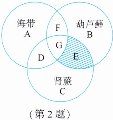 2. 利用图形对不同类别的植物进行归纳梳理,可以直观地反映它们之间的个性和共性。如图是海带、葫芦藓、肾蕨三种植物特征的关系图,其中字母A-G表示植物的各种特征。请据图回答下列问题。