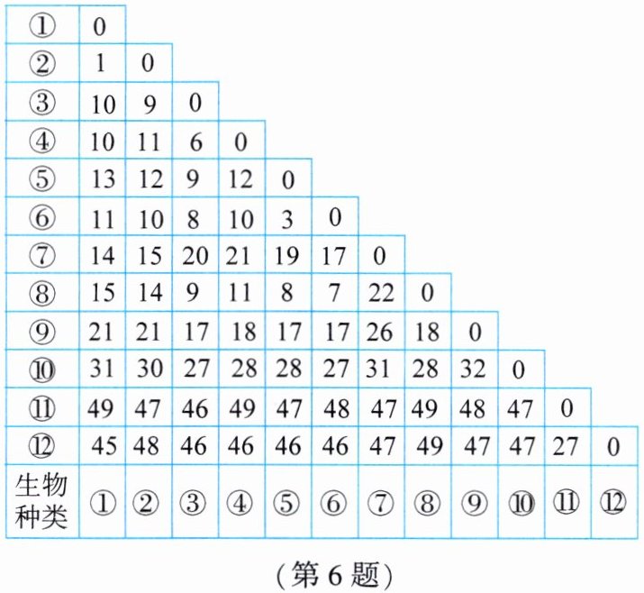 6. 利用分子生物学技术比较不同生物体内同一种蛋白质的分子结构,可根据其差异程度来判断生物间的亲缘关系。如图为不同种类的生物体内细胞色素C的氨基酸序列差异比较。