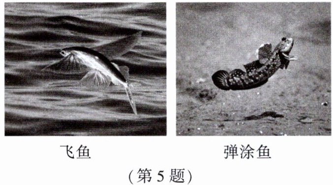 5. 为了能更好地适应环境,某些鱼类的部分结构在形态、功能等方面发生了较大的变化。如图分别为能飞行滑翔的飞鱼,能在滩涂上跳跃的弹涂鱼。