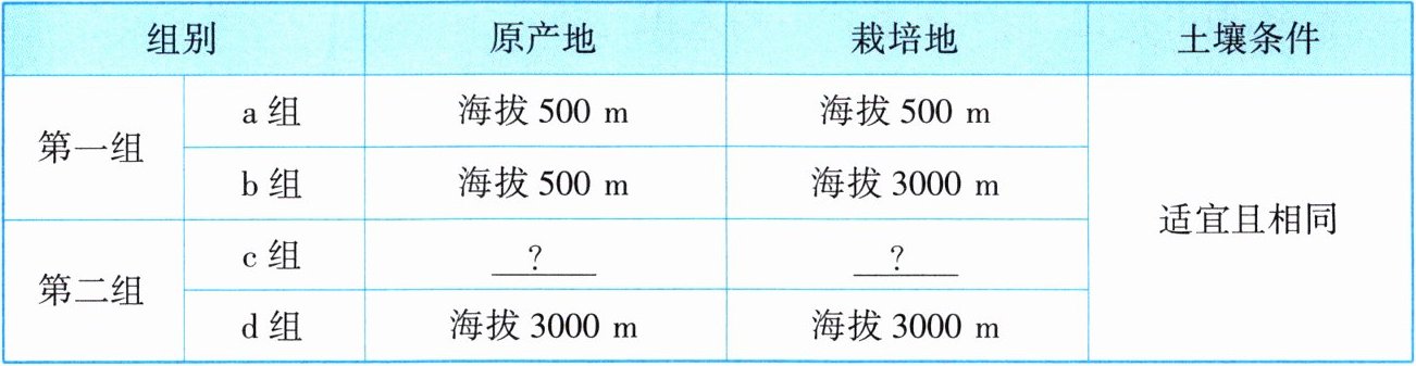 22. 一种菊科植物从海拔500m的平原到海拔3000m以上的高山都有分布,但不同海拔的植株高度不同。为探究海拔高度是不是影响该菊科植株高度的因素,某科学兴趣小组设计了以下两组实验。