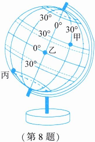 8. 如图为地球仪的侧视图,读图回答下列问题。