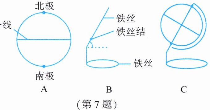 7. 如图为利用乒乓球、细铁丝制作地球仪过程示意图,请结合实际情况回答下列问题。