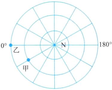 (4) 下图为以北极点为中心的北半球俯视图,请在图上标出甲、乙两地的位置。
