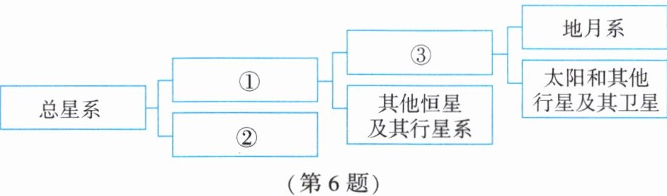 (1) 图中序号所代表的天体系统:①____;②____;③____。