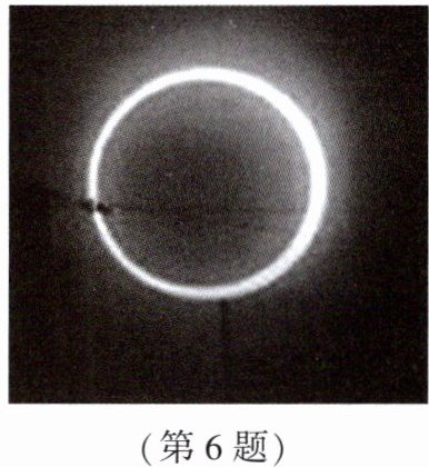 6. 日环食是日食的一种,发生时太阳的中心部分黑暗,边缘仍然明亮,形成光环,如图所示。下列说法正确的是( )。