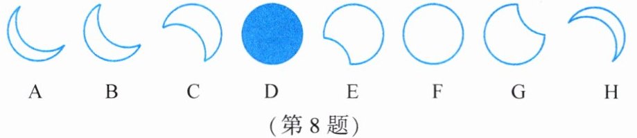 8. 请观察下列日食图,并结合所学知识回答下列问题: