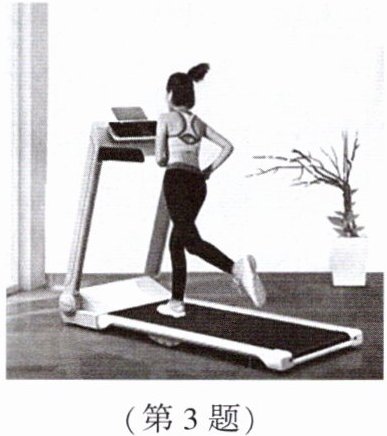 3. 跑步机是家庭及健身房常备的健身器材。开启跑步机后,跑带向后运动,人在跑带上迈开脚步跑步,此时,身体相对跑带是______的,就可以实现在狭小的空间健身。跑步的过程中,若调节跑带的时速为18 km,10分钟后,相当于人跑了______km。