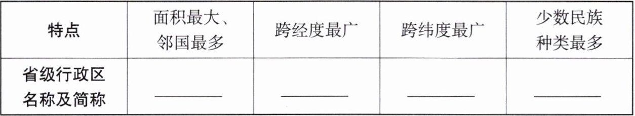 |特点|面积最大、邻国最多|跨经度最广|跨纬度最广|少数民族种类最多|