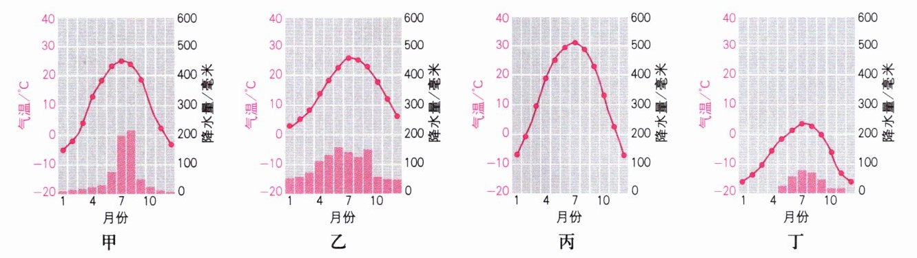 |气候类型|①______气候|亚热带季风气候|③______气候|④______气候|