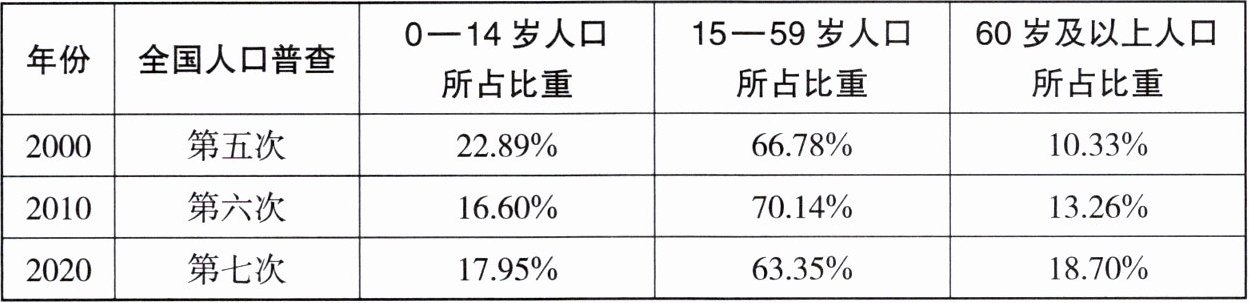从年龄结构上看,我国____人口所占比重最大,____人口所占比重迅速增大。此表反映出我国在人口问题上面临的挑战有:____(列举一个)。为应对这一挑战,可以采取的措施有:______。