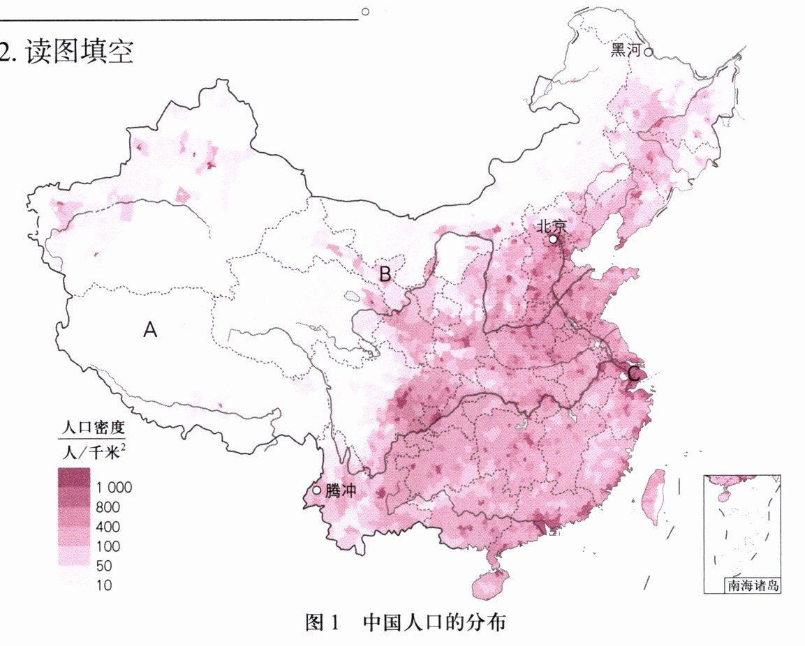 (2)图中 A、B、C 三地中,人口密度由大到小的排序为____。