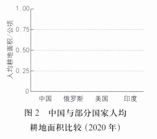 表 1 中国与部分国家陆地面积及人均耕地面积比较(2020 年)