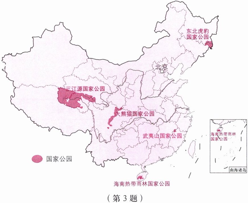 3. 读“中国首批国家公园的分布”图,下列关于我国首批国家公园的说法,正确的有( )