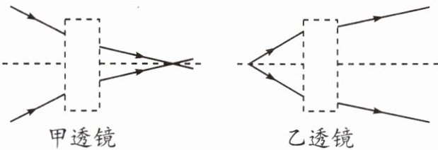 )A.甲透镜的折射光线会聚于一点,说明甲透镜是凸透镜