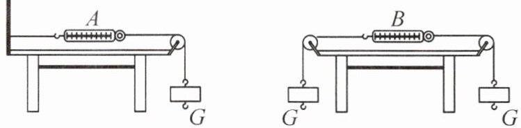 3.如图所示,A、B为两个弹簧测力计,钩码G均为5 N,若不计滑轮摩擦和绳重,当钩码静止时A、B弹簧测力计的读数分别为(