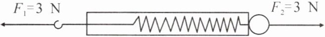 6.弹簧测力计分别受到水平向左的$F_1$和水平向右的$F_2$的拉力作用$,F_1、$$F_2$均为3 N,弹簧测力计静止时如图所示,下列说法正确的是(