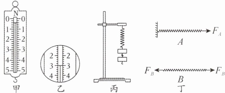 8.小丁在练习使用弹簧测力计时,先将弹簧测力计竖直放置,反复几次轻拉挂钩后,弹簧测力计的指针位置如图甲所示。