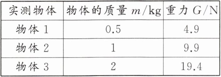 (2)根据实验测得的数据可知:物体所受重力 G 与物体质量 m 的比值为