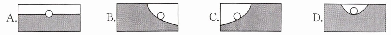 10.兴趣小组利用内径较大且较长的玻璃管制作了“惯性演示仪”,管内装有水,将一只乒乓球放进去,密封管口后将玻璃管水平放置,让球停留在中间位置,如图甲所示。若将玻璃管突然向右运动,下列四幅图中符合实际情景的是(