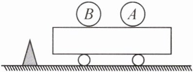 7.如图所示,在一辆表面光滑的小车上有A、B两个小球,质量分别为mₐ、mᵦ,两者与小车以相同的速度一起向左匀速运动,且B在A的正前方。假设小车表面无限长,不计空气阻力,当小车遇到障碍物突然停止后,则两小球(