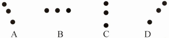 6.在无风的天气里,从水平匀速向右飞行的飞机上,在相同时间间隔,先后投放三包货物。若不计空气阻力,则在地面上的人看到这三包货物下落的过程中,在空中排列的情况应该是(