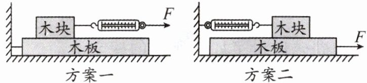 方案一:木板水平固定,通过弹簧测力计水平拉动木块。