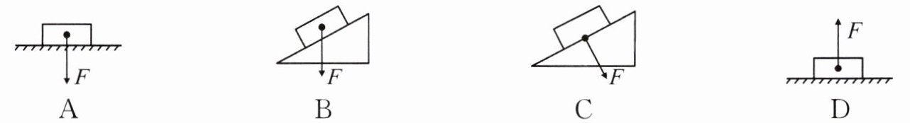 D.根据压强公式$ p= \frac{F}{S} $可知,压强的大小与压力大小成正比