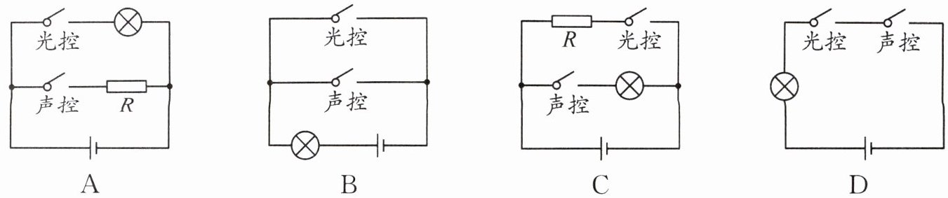 )A.光控开关与灯泡串联,声控开关与电阻R串联,两者并联后接电源