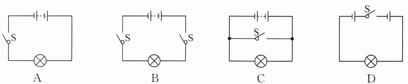 4.右图所示是一款太阳能户外庭院照明灯,内含声控开关和光控开关,可以实现白天在阳光下充电,灯不亮,夜晚有人经过时灯才亮。在图中各电路中,属于该种庭院灯电路的是(