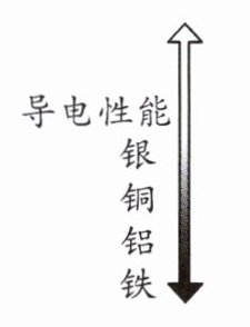 3.右图所示是银、铜、铝、铁四种材料导电性能的排序,从上至下,材料的导电性能依次减弱。则下列说法正确的是(