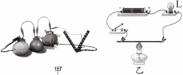 的角色。(2)用电池、灯泡和铅笔芯连接了图乙所示的电路,调节铅笔芯右端夹子的位置,使小灯泡L刚好不发光;然后用点燃的酒精灯对铅笔芯加热,可观察到小灯泡L逐渐变亮,这个实验说明了