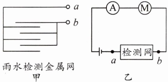 8.有些汽车前风挡玻璃上的刮水器能够随着雨量大小的变化而改变刮水的速度。雨停后,刮水器自动停止工作。小华查阅了相关资料后,自制了如图甲所示的雨水检测金属网(以下简称检测网),并设计了如图乙所示的模拟电路进行探究。