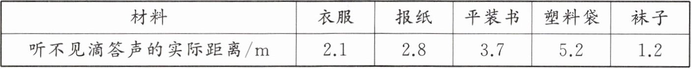 | 听不见滴答声的实际距离/m | 2.1 | 2.8 | 3.7 | 5.2 | 1.2 |