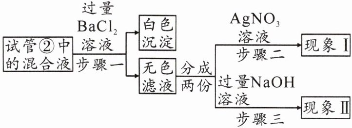 。(3)小蓉认为试管②中没有发生复分解反应,溶液中同时存在Mg²⁺和Cl⁻。查阅资料:SO₄²⁻会对Cl⁻的检验有干扰,需要先除去。小蓉根据资料和自己的猜想提出了下图所示的实验方案。