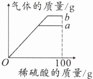 5.向质量均为m的锌粉和铁粉中分别滴加100g同浓度的稀硫酸,反应过程中产生气体的质量与所加稀硫酸的质量关系如图所示。下列叙述正确的是(