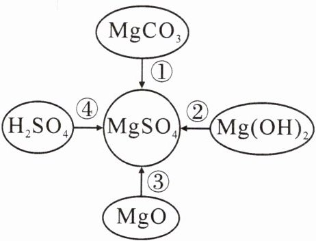 2.某同学在学习了酸、碱、盐的性质后,绘制了可以通过一步反应制取$MgSO_4$的思维导图(如图)