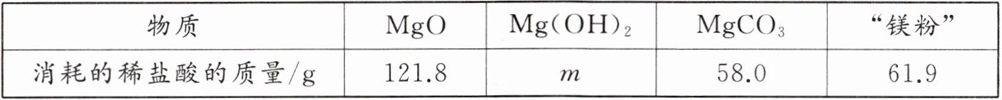(2)相等质量的“镁粉”和$\mathrm{MgCO_3}$消耗稀盐酸的质量不同